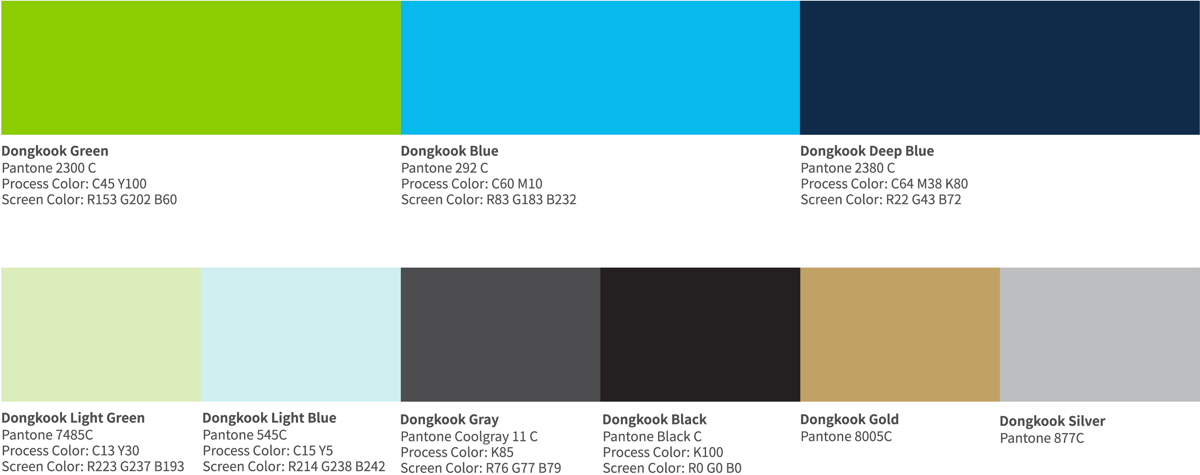 Color palette of Dongkook Pharmaceutical can be utilized for various visual objects. All products of Dongkook Pharmaceutical are judged by the standard of pen tone color. As colors used under the digital environment may differ by medium, we adjust the colors presented according to the screen color standard.
